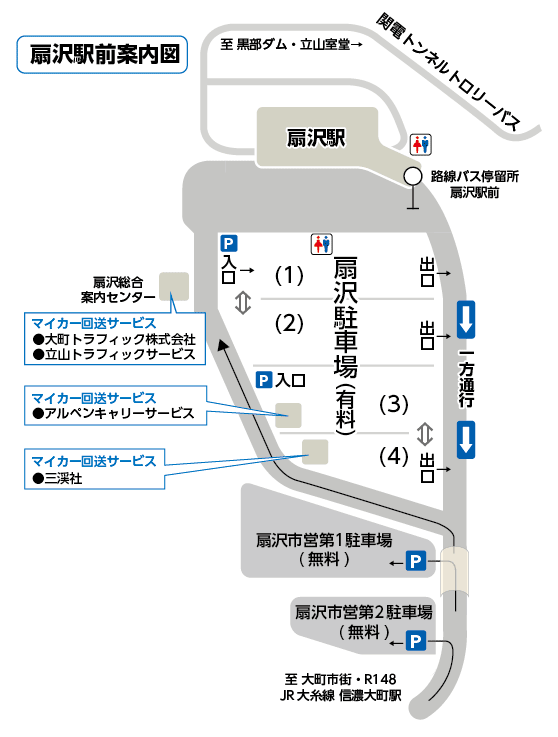 JR信濃大町駅周辺に車を停めて扇沢駅へ行く場合