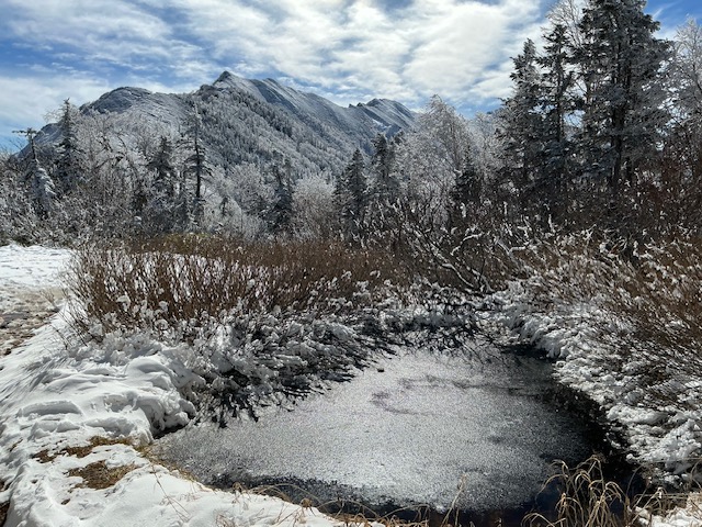 ▲遅れ気味だった冬への足取りもようやく進み始めました。 (10/29:冷池山荘より)